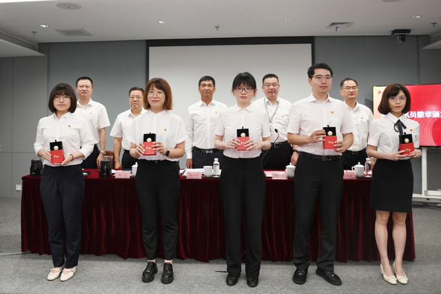 ▲集團(tuán)領(lǐng)導(dǎo)為通訊員代表頒發(fā)通訊員徽章,象嶼集團(tuán)通訊員隊(duì)伍正式組建成立。
