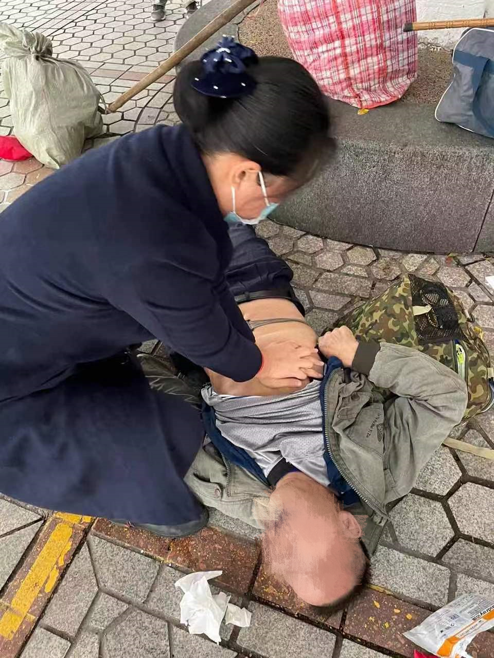 ▲廈門(mén)輪渡鋼琴碼頭站務(wù)員張菊芳進(jìn)行心肺復(fù)蘇