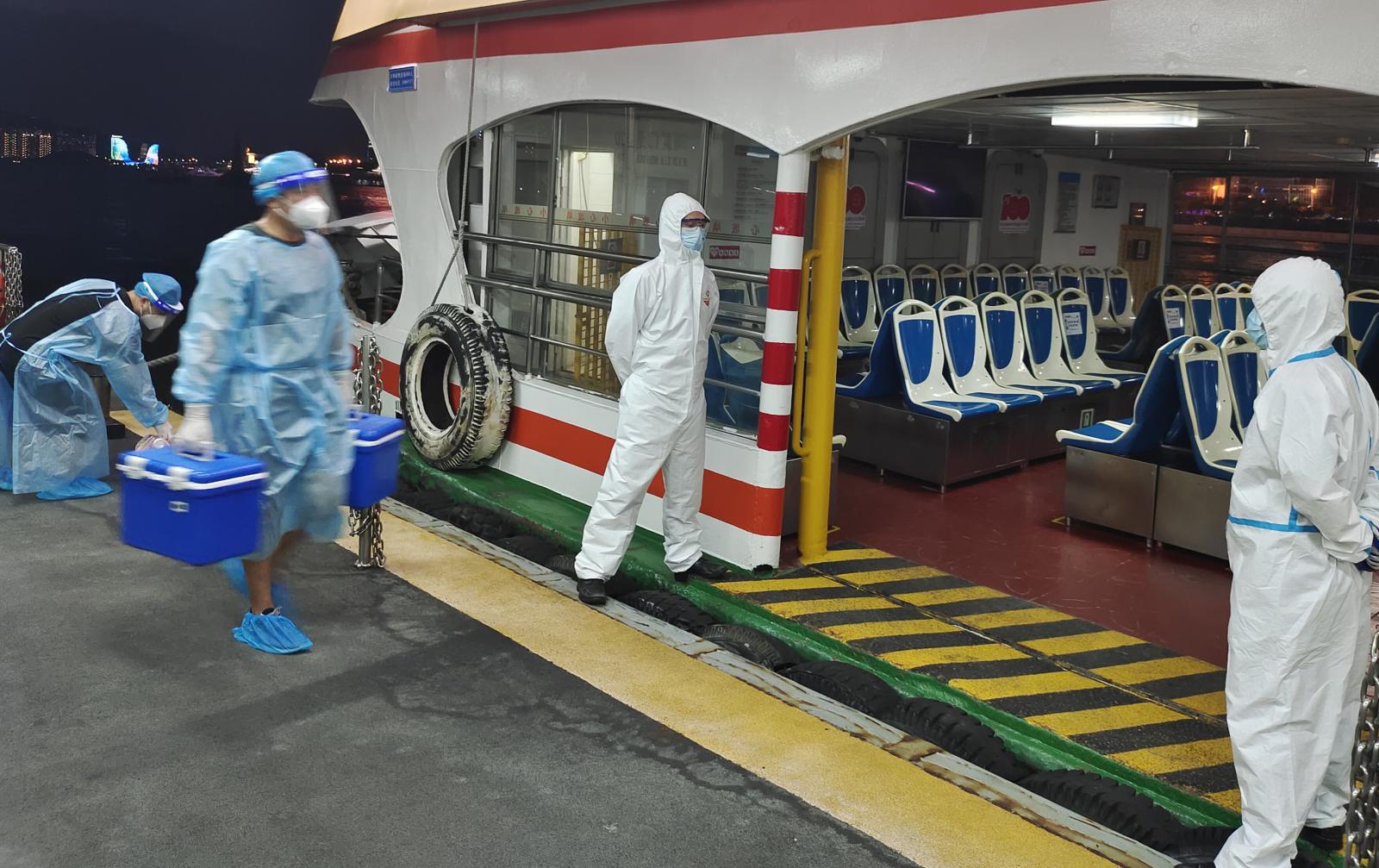 在疫情防控中,廈門(mén)輪渡公司還成立黨員突擊隊(duì),調(diào)派“全國(guó)青年文明號(hào)”——“輪渡20”船作為發(fā)熱病人轉(zhuǎn)運(yùn)專(zhuān)船,日夜守護(hù)人民群眾健康安全。轉(zhuǎn)運(yùn)任務(wù)時(shí)常緊急且繁重,半夜出動(dòng)也是家常便飯。但每當(dāng)任務(wù)來(lái)臨,他們總是毫無(wú)怨言,盡職盡責(zé)暢通“生命轉(zhuǎn)運(yùn)線(xiàn)”,當(dāng)好人民群眾的“守夜人”。每每完成運(yùn)送任務(wù)后,他們還要拖著疲憊的身軀,做好碼頭船岸的消殺工作。據(jù)統(tǒng)計(jì),僅2022年期間,專(zhuān)船就轉(zhuǎn)運(yùn)發(fā)熱病人 236趟次、中高風(fēng)險(xiǎn)地區(qū)人員195趟次、核酸樣本589趟次。