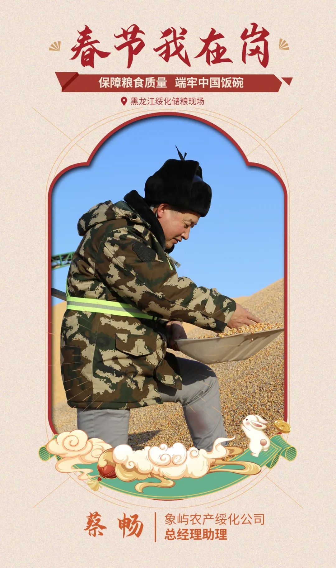 春節(jié)期間黑龍江綏化儲(chǔ)糧現(xiàn)場夜間最低溫度達(dá)到零下36度,綏化農(nóng)產(chǎn)總經(jīng)理助理蔡暢仍每天帶領(lǐng)值班員工檢查糧情,確保幾十萬噸糧食儲(chǔ)存安全。他們用庫內(nèi)電子檢溫系統(tǒng)監(jiān)控糧溫,實(shí)地巡檢倉庫封條是否完好,又到臨儲(chǔ)場地用測溫桿檢測深層糧溫,查看糧食有無結(jié)露、結(jié)頂現(xiàn)象,以一絲不茍的態(tài)度守好大國糧倉。
