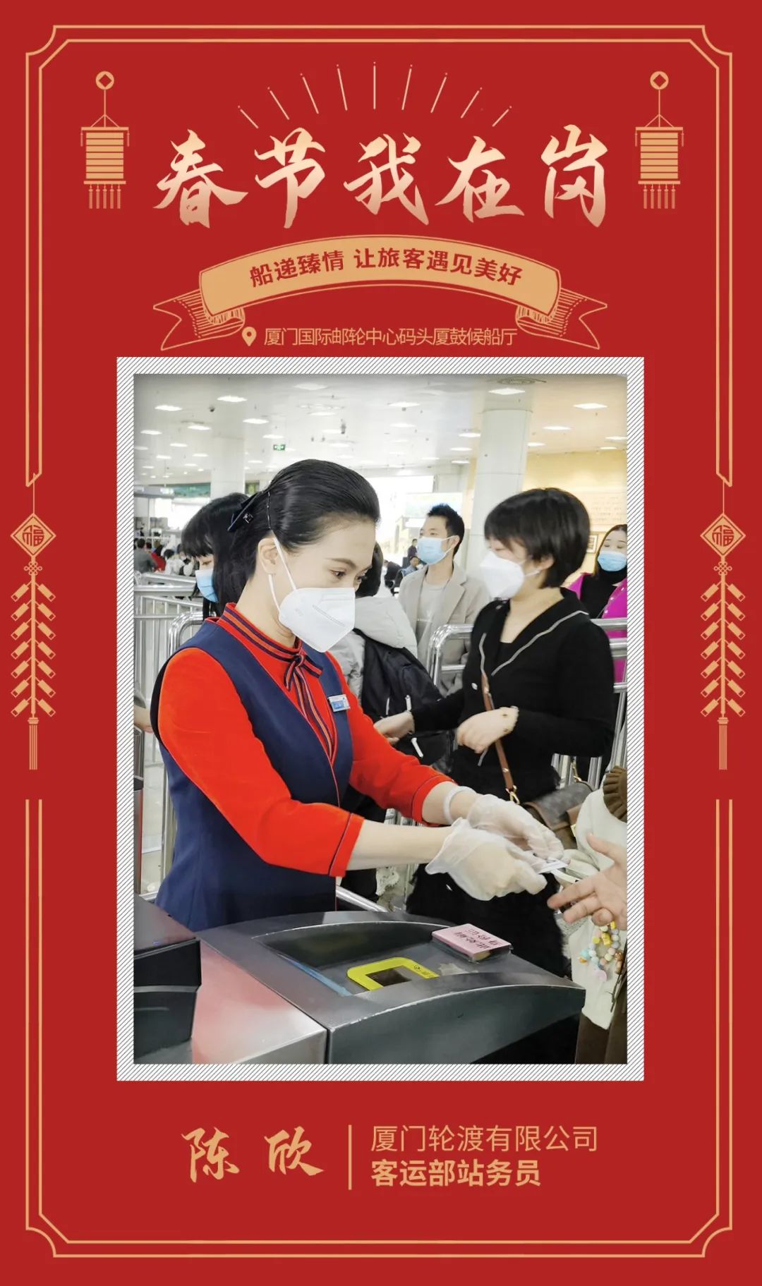 隨著廈門旅游市場的逐步復(fù)蘇,今年春節(jié)期間游客客運(yùn)量預(yù)計(jì)將出現(xiàn)較大增幅。為保障游客開心安心出行,讓他們在鼓浪嶼之旅中遇見美好,陳欣選擇堅(jiān)守崗位,船遞臻情。