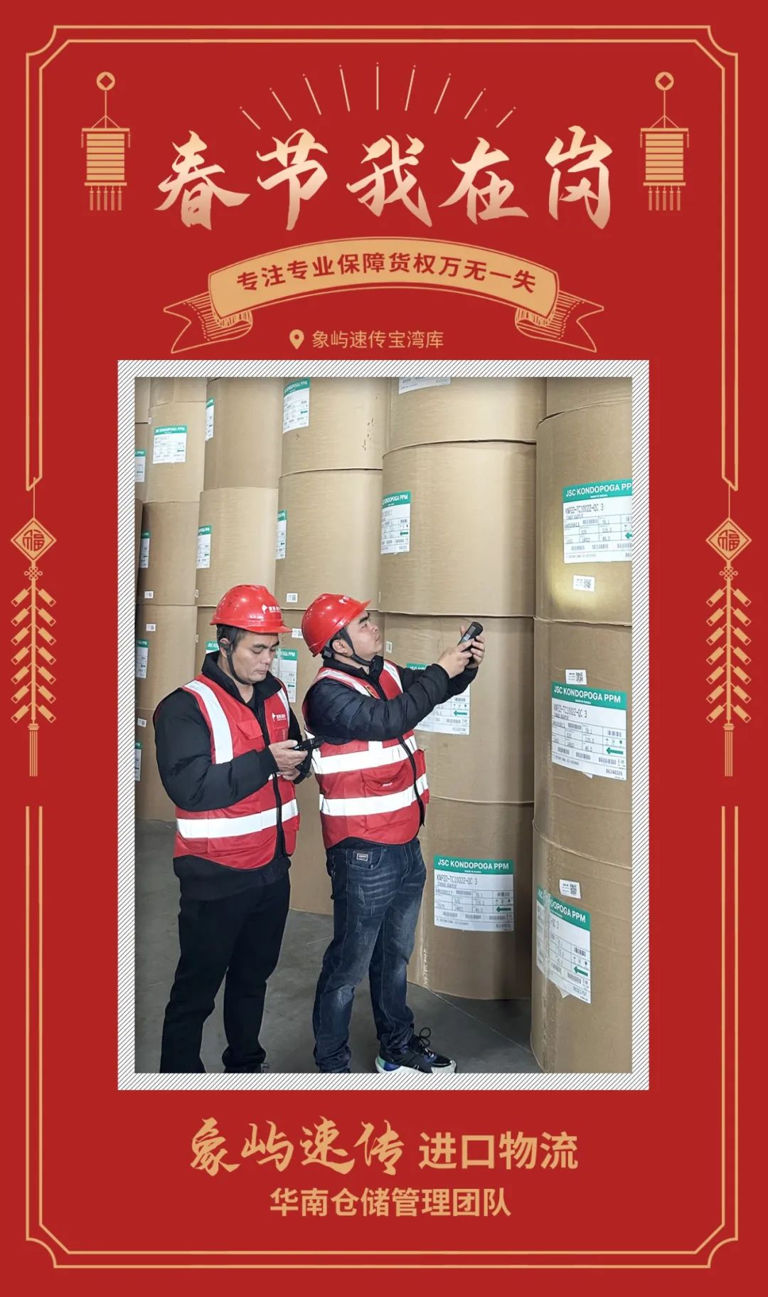 象嶼速傳寶灣庫是2023年新布局的重點(diǎn)倉儲(chǔ)節(jié)點(diǎn),可為塑料、紙漿、農(nóng)產(chǎn)品等行業(yè)客戶提供倉儲(chǔ)清關(guān)配送一體化、專業(yè)化物流服務(wù)。為確保客戶服務(wù)不斷檔、客戶貨權(quán)萬無一失,象嶼速傳進(jìn)口物流華南倉儲(chǔ)管理團(tuán)隊(duì)春節(jié)期間全天候在崗。
