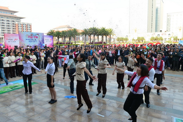 舞臺上,廣場中,各家公司帶來的現(xiàn)場快閃表演拉開了整場嘉年華的帷幕。精彩的舞蹈,勁爆的歌聲,引來陣陣掌聲。