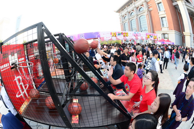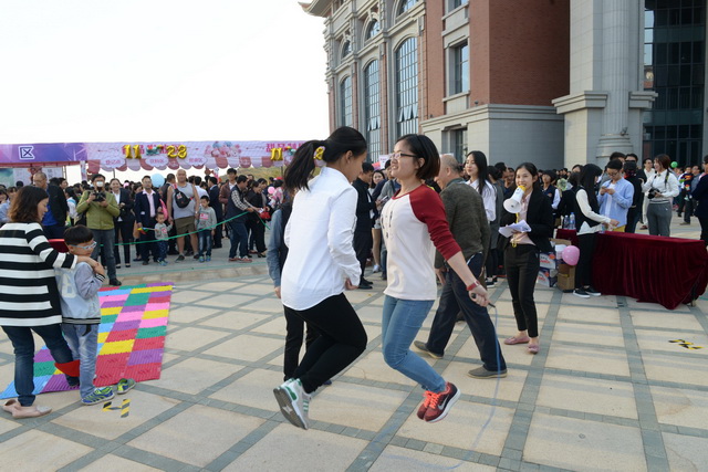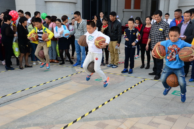 如果說,舞蹈、歌唱帶給我們的是視聽享受,那么在互動游戲區(qū),我們更是能夠融入其中,與身邊的小伙伴,玩在一起,樂在一起。只見游戲區(qū)的一位小朋友嫻熟地朝籃框內(nèi)投球,一瞄準(zhǔn)、一伸脖、一出手,連貫的動作如風(fēng)馳電掣。 “桃花朵朵開”讓一對因?yàn)橛螒虮г谝黄鸬膸浉缑琅呒t了臉;“60秒不NG”讓員工和孩子們相互配合,歡笑不斷;“狂運(yùn)籃球接力賽”讓圍觀的群眾情不自禁或加油助威,或扼腕嘆息。獲勝的人抱著刻有象嶼集團(tuán)20周年紀(jì)念的獎品,引來一波又一波艷羨的眼光和聞訊趕來摩拳擦掌的人群。