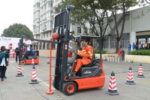 在熱烈的氣氛中,來自福建省內福州、南平、莆田、泉州、廈門、漳州各地的16家單位20支參賽隊伍的41位叉車駕駛高手們以車代“手”,展開了一場力量與技術的比拼。本次大賽為省級總決賽,這些選手均是各地初賽和選拔賽的優(yōu)勝者,獲得過國家勞動部門頒發(fā)的中級叉車工(含)以上資格證書或具有3年及以上叉車從業(yè)經驗。據悉,獲得本次省級決賽個人賽第一名的選手,可按程序申報“福建省五一勞動獎章”;獲得團隊項目第一名的團隊,可按程序申報“福建省工人先鋒號”。