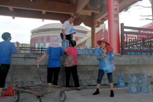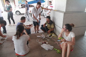 大嶝小鎮(zhèn)被視為兩岸經(jīng)貿(mào)交流的重要平臺,入駐商戶上千家。一停電,大嶝小鎮(zhèn)的全體人員立即進(jìn)入緊急工作狀態(tài)。啟用應(yīng)急柴油發(fā)電機(jī)發(fā)電,除確保連續(xù)24小時(shí)應(yīng)急供電外,還貼心地設(shè)置了臨時(shí)手機(jī)充電處,為商戶及當(dāng)?shù)鼐用裉峁┍憷?。入駐的商戶中也不乏愛心人士,他們組織義工,資助桶裝水500桶,有序派發(fā)給缺水居民?!叭慷际敲赓M(fèi)的?!币?yàn)樨?zé)任,因?yàn)榈懒x!