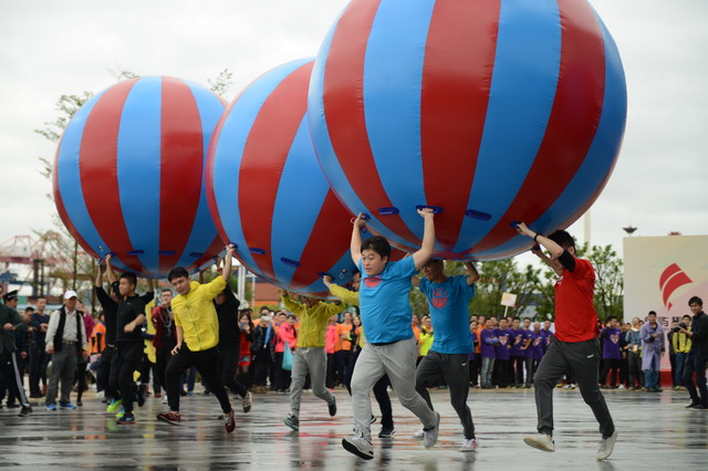 由于路面濕滑,奔跑的隊(duì)員狀況不斷。當(dāng)碩大的氣球險(xiǎn)些滑至地面時(shí),隊(duì)員們咬緊牙,憑借團(tuán)隊(duì)的力量將氣球重新奮力托起。象嶼農(nóng)產(chǎn)的挑戰(zhàn)隊(duì)員摔倒后,迅速起身,繼續(xù)奮勇向前。這一幕幕拼搏的畫面,彰顯了象嶼人奮勇向前,勇?lián)?zé)任的精神。