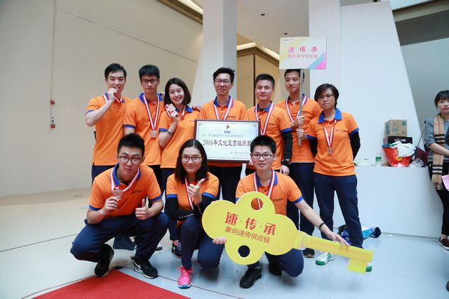 象嶼速傳供應(yīng)鏈發(fā)展股份有限公司奪得2016年象嶼文化宣貫組織獎,象嶼園區(qū)開發(fā)中心“小飛象”隊(duì)、象嶼地產(chǎn)集團(tuán)聯(lián)隊(duì)“先鋒隊(duì)”和象嶼速傳供應(yīng)鏈“速?傳?承”則分獲象嶼企業(yè)文化團(tuán)隊(duì)挑戰(zhàn)賽的冠亞季軍。今年象嶼人還在廈門市排舞比賽中榮獲第二名、榮獲廈門市國有企業(yè)運(yùn)動會乒乓球比賽第一名、廈門市國有企業(yè)運(yùn)動會團(tuán)體第三名的佳績。與此同時(shí),象嶼集團(tuán)第六屆運(yùn)動會圓滿閉幕,活動現(xiàn)場還為全年五大項(xiàng)比賽項(xiàng)目——乒乓球混合團(tuán)體追逐賽、羽毛球混合團(tuán)體追逐賽、游泳比賽、男子籃球比賽、臺球混合團(tuán)體追逐賽的獲獎員工頒發(fā)出獎牌和獎杯。拿到榮譽(yù)證書的象嶼人歡欣鼓舞,互相拍照合影,同享榮譽(yù)和歡樂。