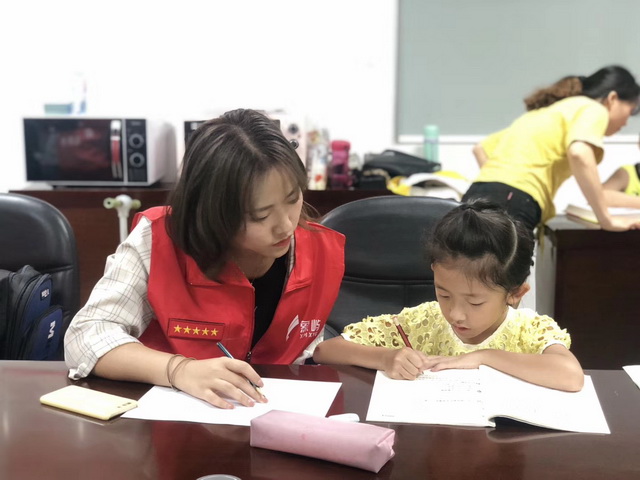 看,這認真教學(xué)的一對對。小嘉嘉苦惱于一篇“做家務(wù)”的作文,象嶼小姐姐便和他彼此分享做家務(wù)的心得,讓他有了靈感。當(dāng)稚嫩的面龐上泛起絢爛的笑容,志愿者的心里也滿是幸福。