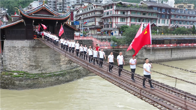 飛奪瀘定橋,是紅軍長(zhǎng)征路上的關(guān)鍵一仗,是一場(chǎng)比智慧、比毅力、比勇氣的戰(zhàn)斗。“挑戰(zhàn)之旅”隊(duì)伍在黨旗和支線旗的引領(lǐng)下,行進(jìn)在鐵索橫江的瀘定橋上,一幅幅戰(zhàn)斗畫面在腦海中浮現(xiàn),一聲聲吶喊和槍炮聲猶在耳畔回蕩,激發(fā)起象嶼建設(shè)集團(tuán)團(tuán)隊(duì)干事創(chuàng)業(yè)、勇于挑戰(zhàn)的工作熱情。