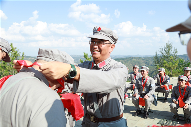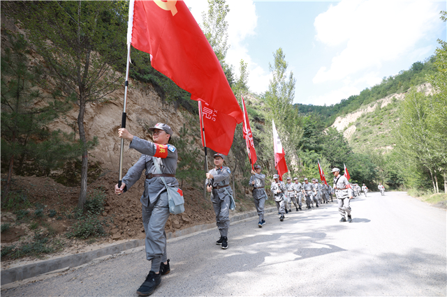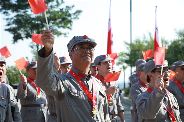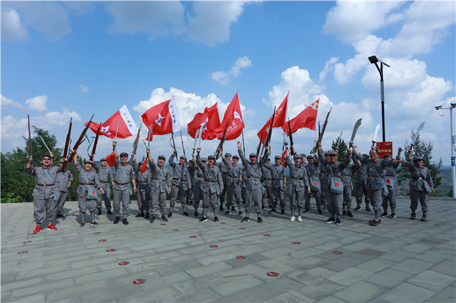 向著勝利曙光,隊(duì)伍頂著烈日在勝利山腳下集結(jié),向著山頂出發(fā),用2.5公里的徒步行軍致敬二萬(wàn)五千里征途,感受紅軍堅(jiān)韌不拔、團(tuán)結(jié)互助、勇往直前的精神,汲取長(zhǎng)征精神力量。