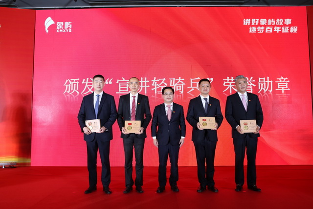 ▲象嶼集團(tuán)黨委委員、紀(jì)委書記許振龍為宣講人授予“象嶼集團(tuán)黨建理論宣講輕騎兵勛章”