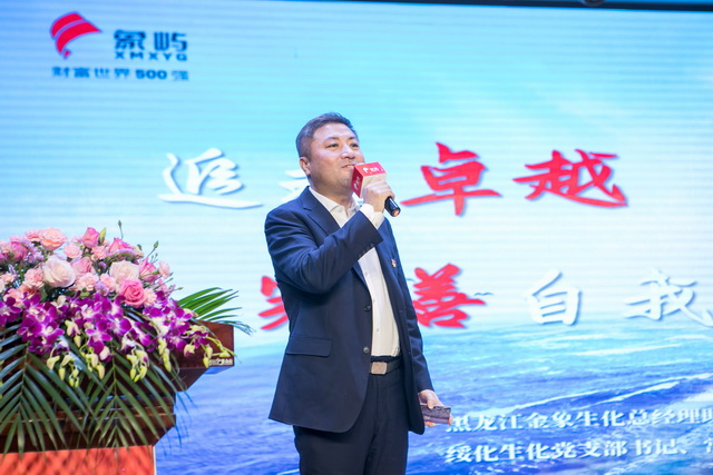 ▲黑龍江金象生化總經(jīng)理助理、綏化生化黨支部書記、常務(wù)副總經(jīng)理黃紹軍帶來宣講《追求卓越,完善自我》