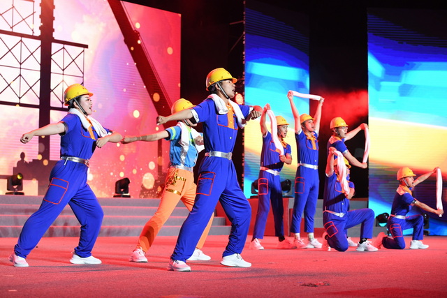 ▲象嶼海裝帶來歌舞《咱們工人有力量》