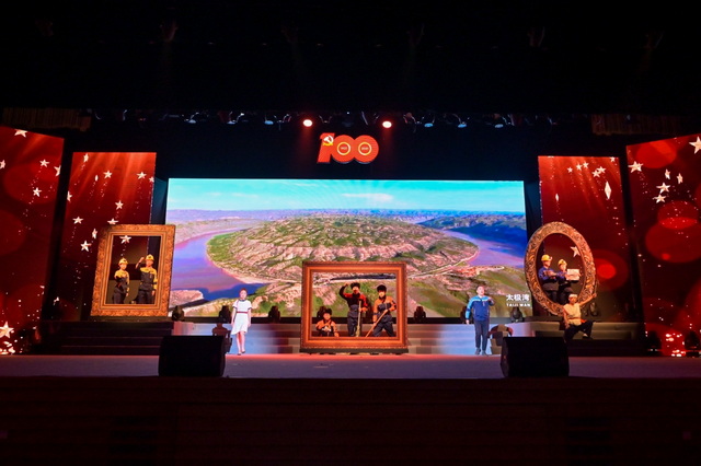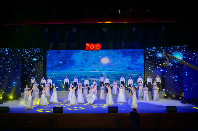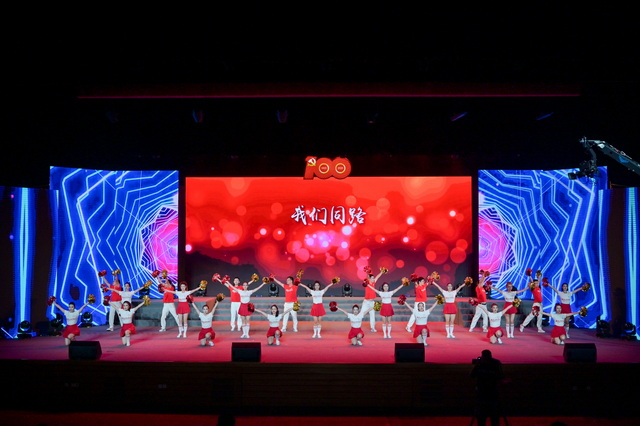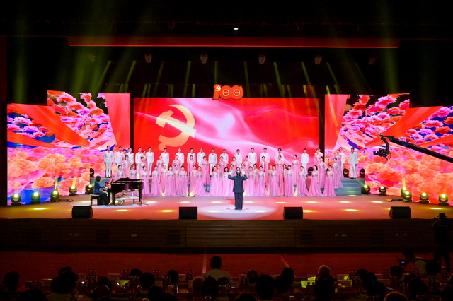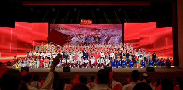 “迎風(fēng)飄揚(yáng)的旗,我們舉著你,舉起你就是舉起我們自己。迎風(fēng)飄揚(yáng)的旗,我們跟著你,跟著你就是跟著信仰堅定不移。”合唱《迎風(fēng)飄揚(yáng)的旗》,拉開展演活動的序幕。這面鐮刀錘頭的旗幟穿越百年,卷走黑夜迎來晨曦,引領(lǐng)國家富強(qiáng)、民族復(fù)興、人民幸福。