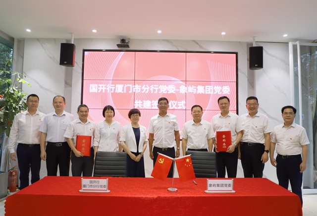 座談會后,雙方黨委舉行《黨組織結(jié)對共建協(xié)議》簽約儀式。國開行廈門市分行黨委委員、副行長周樹林與象嶼集團黨委副書記、工會主席邵蕰默代表雙方簽署共建協(xié)議,國開行黨委班子領(lǐng)導(dǎo)曾麗卿、蔡丹華、潘景南,象嶼集團黨委班子領(lǐng)導(dǎo)張水利、陳方、鄧啟東、許振龍,以及雙方職能部門代表等共同見證這一重要時刻。