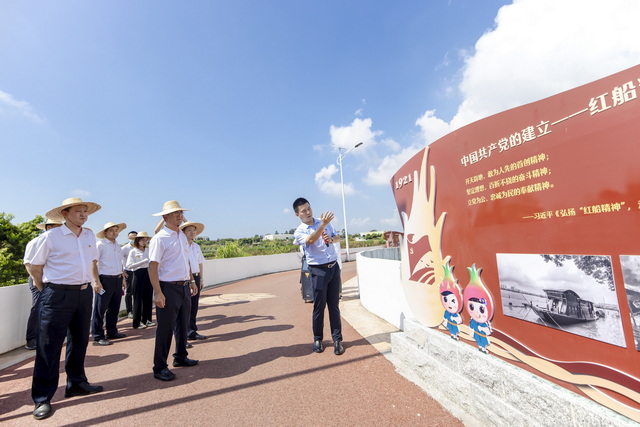 翔安大宅社區(qū)坐落于香山西麓,火龍果種植面積達(dá)1400畝,是福建省黨建富民強(qiáng)村示范基地、廈門(mén)市級(jí)鄉(xiāng)村振興示范村。“百年黨史大道”就蜿蜒在火龍果田間,沿途選取建黨百年來(lái)與農(nóng)村農(nóng)業(yè)發(fā)展改革相關(guān)的13個(gè)關(guān)鍵節(jié)點(diǎn)進(jìn)行重點(diǎn)展示,生動(dòng)講述了“鄉(xiāng)村振興,關(guān)鍵在黨”的道理。