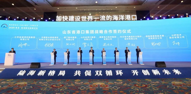 10月22日,象嶼集團黨委書記、董事長張水利應(yīng)邀出席由山東省政府主辦,青島市政府、山東省交通運輸廳、山東省港口集團共同承辦的2021青島·陸海聯(lián)動高峰論壇。論壇上,象嶼集團與山東省港口集團簽署戰(zhàn)略合作協(xié)議,共建陸海聯(lián)動大聯(lián)盟。