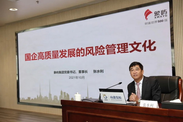 10月23日上午,應(yīng)山東省港口集團的邀請,張水利董事長為山東港口領(lǐng)導(dǎo)干部做《國企高質(zhì)量發(fā)展的風(fēng)險管理文化》主題分享。他回顧了象嶼集團以市場化理念成就世界五百強的發(fā)展歷程,介紹了象嶼集團的風(fēng)險管控文化,從戰(zhàn)略風(fēng)險、人力資源風(fēng)險、結(jié)構(gòu)風(fēng)險、制度風(fēng)險等維度,分享了象嶼集團風(fēng)險管控的新思考、新實踐,引發(fā)熱烈反響。