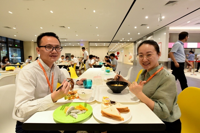 它美在膳食健康。餐廳委托世界500強(qiáng)餐飲服務(wù)企業(yè)康帕斯悉心運(yùn)營,嚴(yán)把食品安全關(guān)。集團(tuán)行政中心及各公司代表還組成膳食管理委員會,對餐廳的食品安全、環(huán)境衛(wèi)生、餐品質(zhì)量等進(jìn)行監(jiān)管,并每天向員工公示食材驗(yàn)收情況。