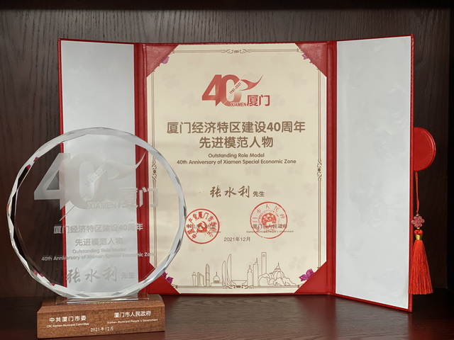 在這一特殊歷史時(shí)點(diǎn)上,廈門市委、市政府決定對(duì)為廈門經(jīng)濟(jì)特區(qū)建設(shè)作出突出貢獻(xiàn)的先進(jìn)模范人物和創(chuàng)新創(chuàng)業(yè)人物進(jìn)行表?yè)P(yáng)。全國(guó)勞動(dòng)模范、象嶼集團(tuán)黨委書記、董事長(zhǎng)張水利榮膺廈門經(jīng)濟(jì)特區(qū)建設(shè)四十周年先進(jìn)模范人物。