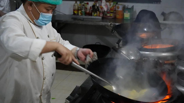 項(xiàng)目員工們來(lái)自五湖四海,因此年夜飯的菜單也根據(jù)家鄉(xiāng)口味精心定制??矗o四川員工準(zhǔn)備了魚香肉絲、麻辣豆腐、宮爆雞丁、回鍋肉、風(fēng)味茄子,給山東員工準(zhǔn)備了油燜大蝦、糖醋里脊、掛霜花生、泰山三美,給江蘇員工準(zhǔn)備了紅燒獅子頭、鹽水鴨、雞汁煮干絲,給福建員工準(zhǔn)備了糖醋排骨、香菇雞、煮干絲……道道佳肴,將滿滿的感謝和祝福烹入其中,激蕩起濃濃的家國(guó)之情。
