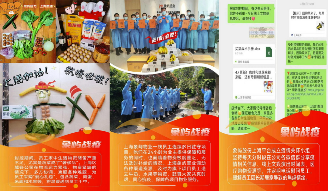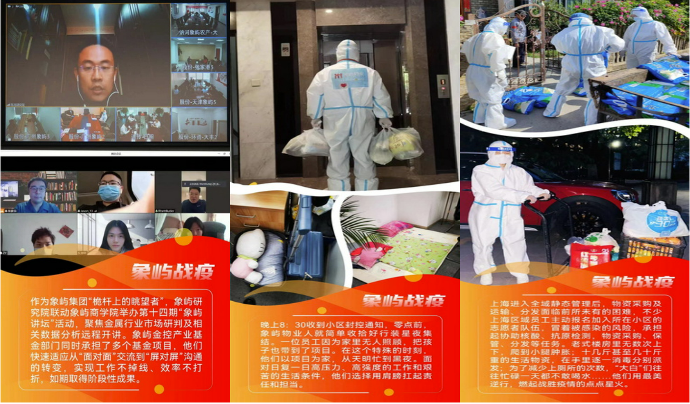 自上海疫情防控攻堅(jiān)戰(zhàn)打響以來,923位象嶼人堅(jiān)守崗位,奮戰(zhàn)在此,他們的安危冷暖牽動(dòng)人心。象嶼集團(tuán)黨委、集團(tuán)公司、集團(tuán)工會(huì)特向在滬員工發(fā)去暖心慰問信,并提供24小時(shí)不間斷的員工心理關(guān)愛熱線,幫助員工疏解情緒壓力。集團(tuán)黨委、集團(tuán)工會(huì)還相繼出臺(tái)多項(xiàng)防疫專項(xiàng)補(bǔ)助政策,并統(tǒng)籌協(xié)調(diào)旗下象嶼股份、象嶼地產(chǎn)、象嶼金控等相關(guān)行業(yè)落實(shí)在滬員工關(guān)愛各項(xiàng)措施,為員工構(gòu)筑堅(jiān)實(shí)后盾。
