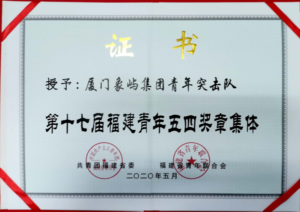 象嶼集團青年突擊隊榮獲“福建青年五四獎?wù)录w”榮譽稱號,象嶼集團團委榮獲“廈門市青年五四獎?wù)录w”榮譽稱號。