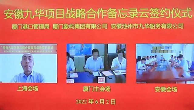 6月2日,象嶼集團(tuán)與廈門港口管理局、安徽池州市九華船務(wù)有限公司“云端”簽署戰(zhàn)略合作備忘錄,三方攜手在船舶建造、運(yùn)輸經(jīng)營(yíng)、船舶融資、要素聚集等領(lǐng)域深挖合作空間,共同推進(jìn)廈門港口航運(yùn)事業(yè)做大做強(qiáng),助力廈門港口高質(zhì)量發(fā)展。廈門港口管理局黨組書記、局長(zhǎng)夏長(zhǎng)文,象嶼集團(tuán)黨委書記、董事長(zhǎng)張水利,安徽九華船務(wù)董事長(zhǎng)王國(guó)年等出席簽約儀式。