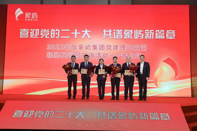6月30日晚,“喜迎黨的二十大,共譜象嶼新篇章”象嶼集團(tuán)黨建理論宣講輕騎兵巡回宣講活動(dòng)在青島舉行。象嶼集團(tuán)黨委副書(shū)記、總裁鄧啟東,黨委副書(shū)記、工會(huì)主席邵蕰默,副總裁林志勇及200余名周邊區(qū)域公司員工代表現(xiàn)場(chǎng)聆聽(tīng),全球各地象嶼員工也以觀看視頻直播的方式“云參與”。